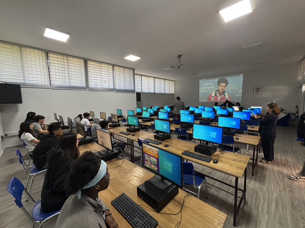 22 de Octubre – Inauguración de la Sala de informática Carlos Acutis. El Colegio Carolina Llona presentó su nueva y moderna sala de computación, habilitada para 45 estudiantes, llamada «Sala Carlos Acutis». Este espacio ha sido diseñado para potenciar significativamente el aprendizaje digital y el desarrollo de los estudiantes.